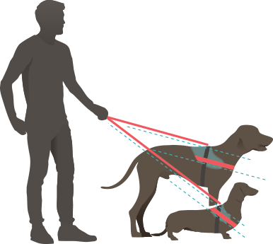 Annak érdekében, hogy minden kutyának megadhassuk ezt a kényelmet, a kutyák méretét és az ettől függő pórázpozíciót figyelembe véve más-más felépítésű hámot terveztünk a kicsi és nagy kutyáknak.